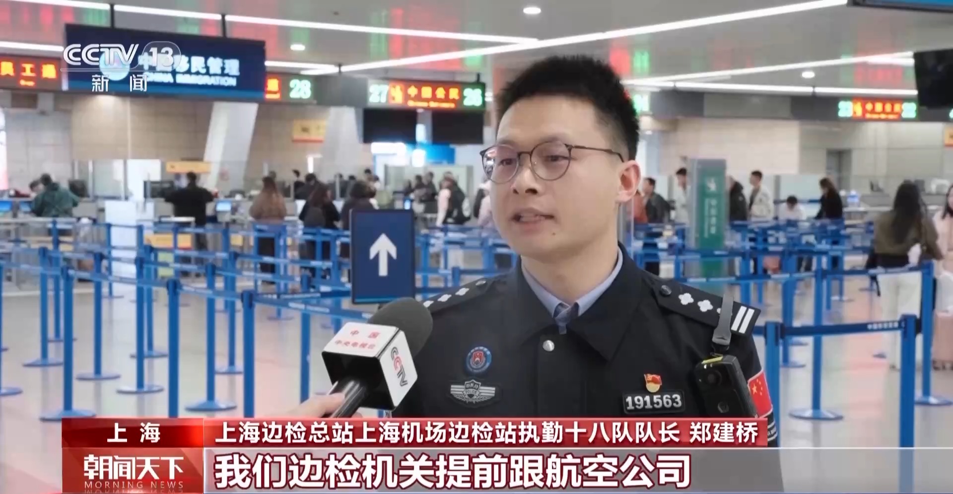 上海邊檢總站上海機場邊檢站執(zhí)勤十八隊隊長 鄭建橋:我們邊檢機關(guān)提前跟航空公司進行了精準(zhǔn)對接,及時掌握航班動態(tài)。我們還逐一核對旅客的信息,同時我們在現(xiàn)場加強了現(xiàn)場的指引和警力保障,為他們中轉(zhuǎn)提供便利,確保這批滯留海外的臺胞朋友能夠盡快返鄉(xiāng)。