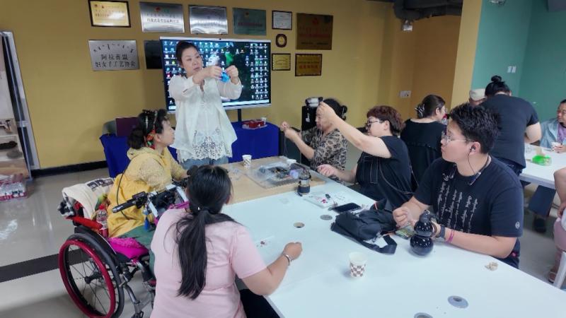 就業(yè)是殘疾人融入社會(huì)、實(shí)現(xiàn)自我價(jià)值的重要途徑。在阿拉善左旗志成殘疾人輔助性就業(yè)中心,學(xué)員們圍坐在一起,低頭專注于手中的手工藝品,盡管動(dòng)作有快有慢,但每個(gè)人都神情專注,用勞動(dòng)書寫著對生活的熱愛。