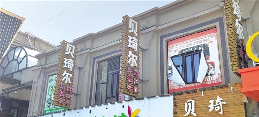 當(dāng)日,記者來到貝琦爾兒童攝影會館,該店招牌還未摘掉,但店門已經(jīng)上鎖。從外向里看去,屋內(nèi)擺滿了零亂的雜物,店門前則貼著一張出租告示。