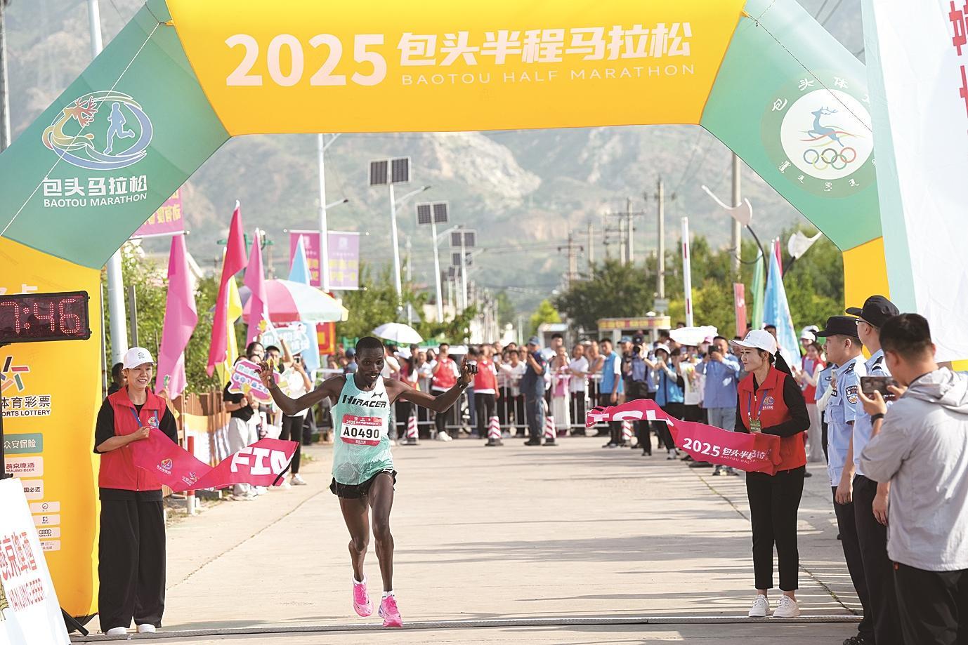 撞線后,男子組冠軍來自肯尼亞的選手Vincent kipchumba Toroitich表示:“這是我第一次來包頭,今天很開心能取得這個成績,感覺包頭非常好?!?/p>