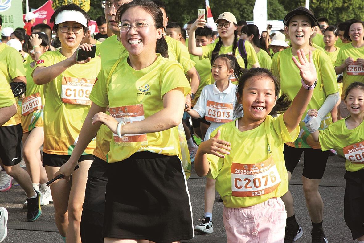 參加歡樂跑的10歲小朋友郝雨嘉堅定地說:“雖然天氣很熱,但也只有五公里,有爸爸媽媽帶著我,肯定能跑下來,我還想去看非遺表演和紀念品呢?!?/p>