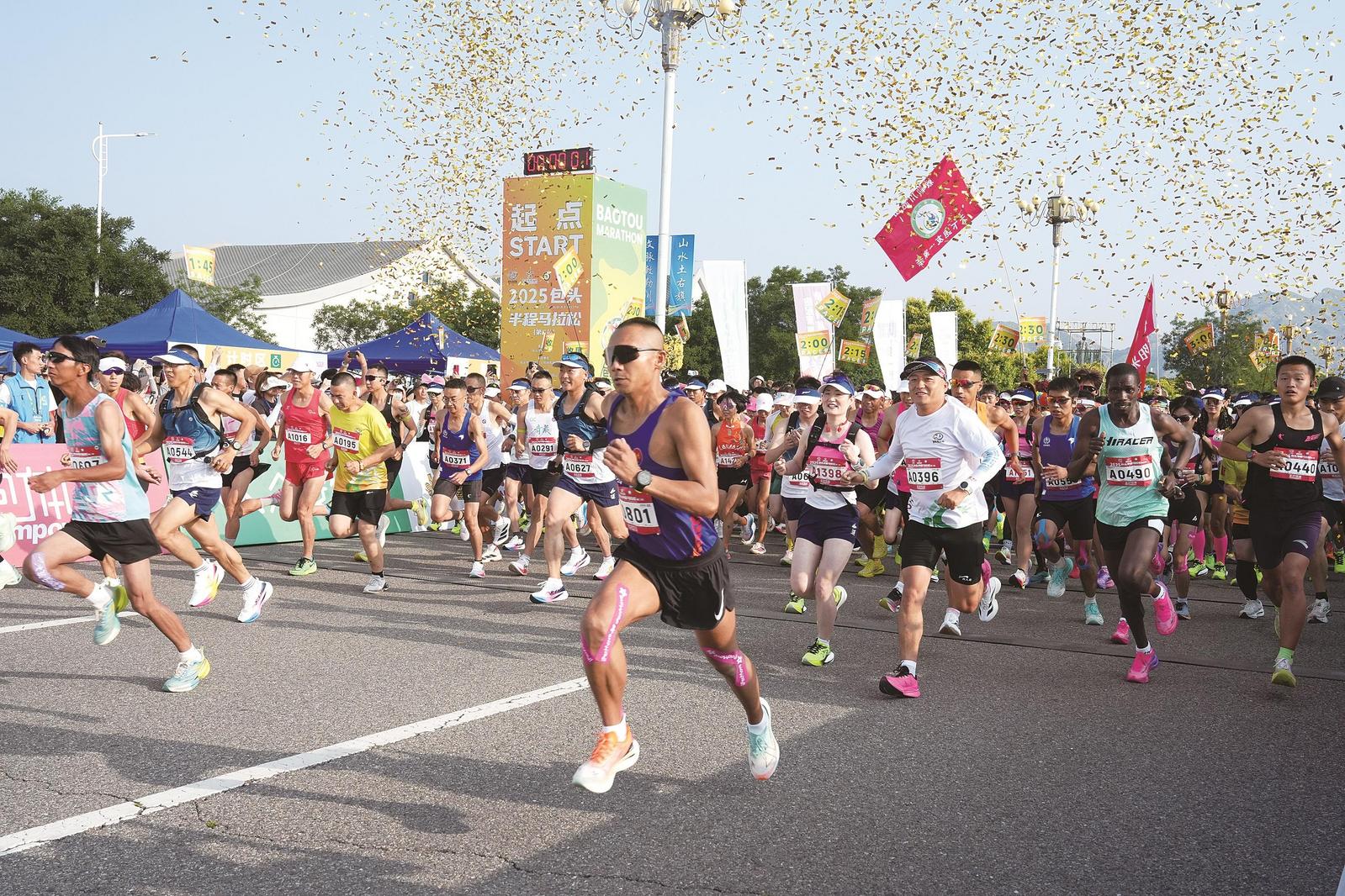 7月13日上午7:30,2025包頭半程馬拉松(第二站)在土默特右旗敕勒川文化公園火熱開賽。共有來自法國、肯尼亞等國家和全國各地的近萬名跑友參賽。