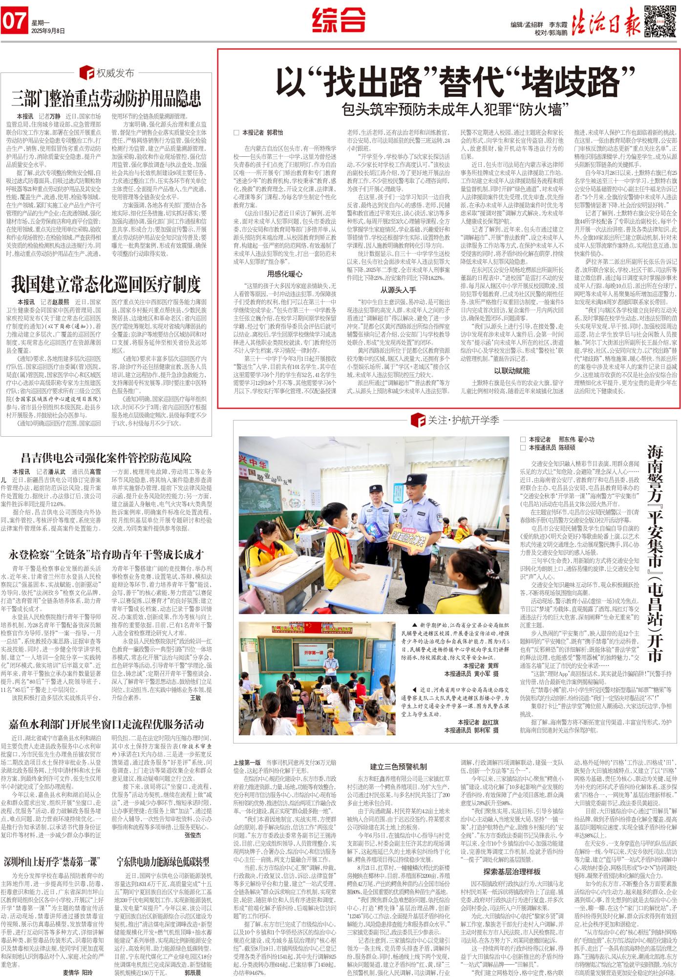 “我們與轄區(qū)各學(xué)校建立良好的互動(dòng)關(guān)系,及時(shí)掌握在校學(xué)生動(dòng)態(tài),對違法犯罪的苗頭實(shí)現(xiàn)早發(fā)現(xiàn)、早干預(yù)。同時(shí),加強(qiáng)校園周邊巡邏,防止學(xué)生放學(xué)后與社會(huì)閑散人員接觸?!卑柖〈蠼峙沙鏊彼L王磊介紹,家庭、學(xué)校、社區(qū)、公安同向發(fā)力,以“找出路”替代“堵歧路”,精準(zhǔn)施策、暖心幫扶。當(dāng)派出所的案卷中涉及未成年人的案件記錄日益減少,這座城市收獲的不僅是社會(huì)治安綜合治理精細(xì)化水平提升,更為寶貴的是青少年在法治陽光下健康成長。(記者 郭君怡)