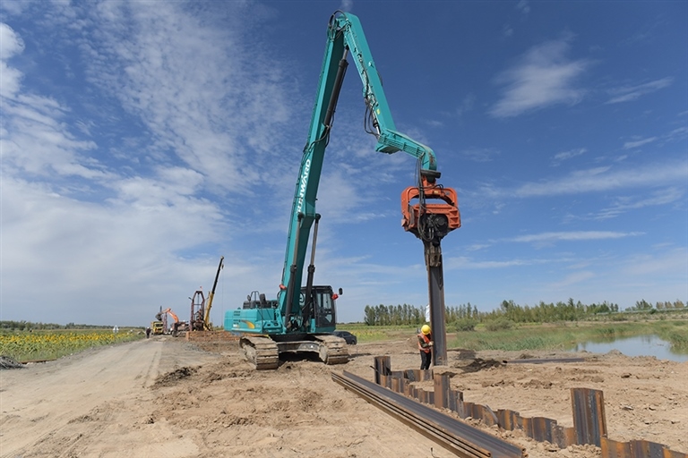 在專業(yè)車輛和設(shè)備的輔助下,工人們有的灌注混凝土,有的安裝護(hù)筒,有的下鋼筋籠,有的澆筑樁基,一派繁忙的景象?!澳壳肮こ桃呀?jīng)進(jìn)入反循環(huán)鉆機(jī)樁基和承臺(tái)的施工階段,五原特大橋等橋梁、路基重點(diǎn)工程施工正在有序推進(jìn)?!敝需F二十五局包銀高鐵工程項(xiàng)目部副經(jīng)理蔣才徉告訴記者,“今年我們將完成100%的樁基、70%的承臺(tái)、90%的路基地基處理、30%的路基填筑以及33%的制梁施工任務(wù)?!?/p>