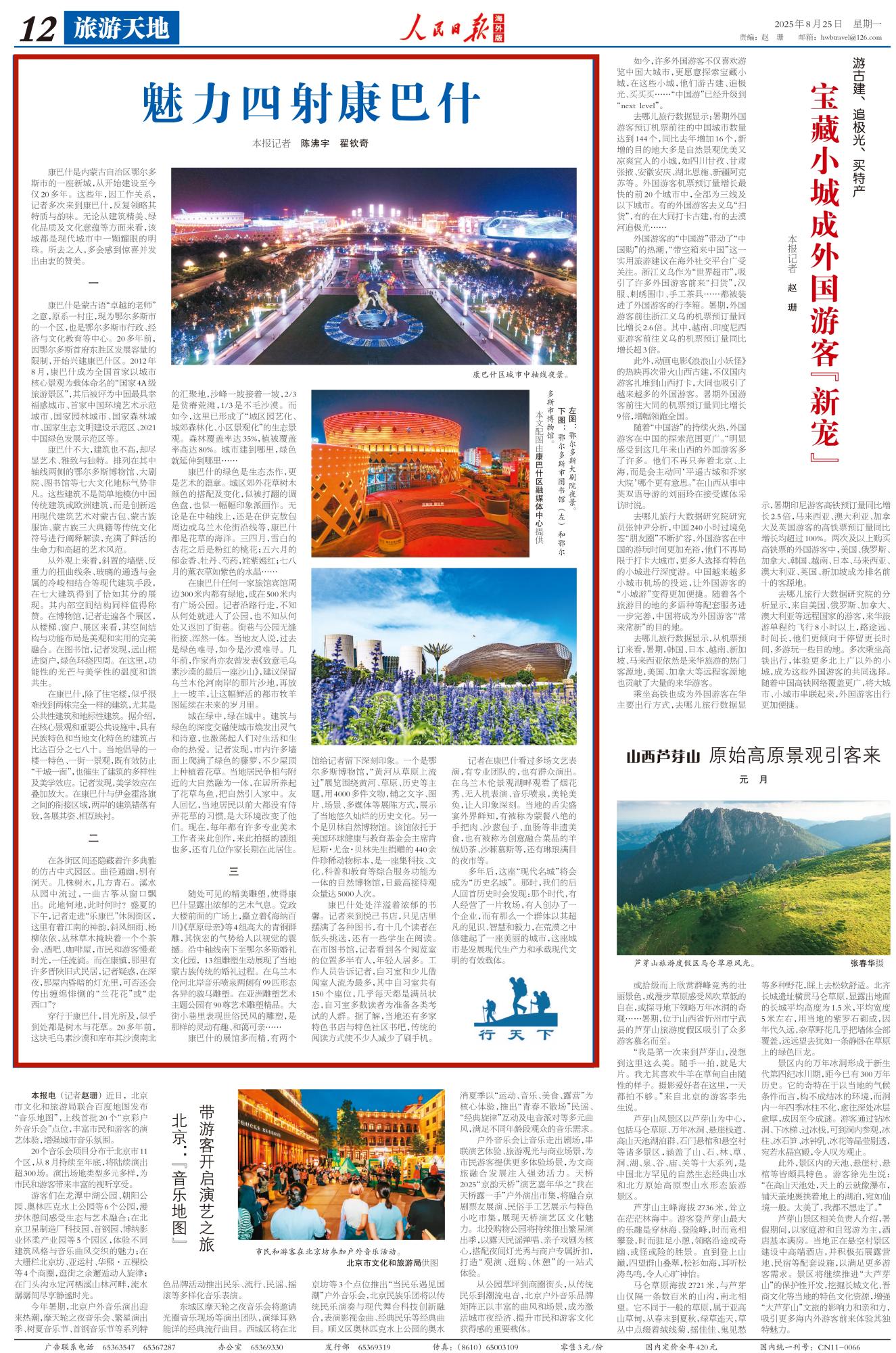 2025年8月25日,《人民日報(bào)海外版》第12版刊發(fā)題為《魅力四射康巴什》的文章,報(bào)道了因工作關(guān)系,記者多次來到康巴什,反復(fù)領(lǐng)略其特質(zhì)與韻味。無論從建筑精美、綠化品質(zhì)及文化意蘊(yùn)等方面來看,該城都是現(xiàn)代城市中一顆耀眼的明珠。所去之人,多會(huì)感到驚喜并發(fā)出由衷的贊美。