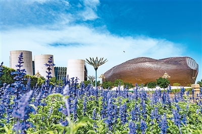 從外觀上來看,斜置的墻壁、反重力的扭曲線條、玻璃的通透與金屬的冷峻相結(jié)合等現(xiàn)代建筑手段,在七大建筑得到了恰如其分的展現(xiàn)。其內(nèi)部空間結(jié)構(gòu)同樣值得稱贊。在博物館,記者走遍各個(gè)展區(qū),從樓梯、窗戶、展區(qū)來看,其空間結(jié)構(gòu)與功能布局是美觀和實(shí)用的完美融合。在圖書館,記者發(fā)現(xiàn),遠(yuǎn)山框進(jìn)窗戶,綠色環(huán)繞四周。在這里,功能性的光芒與美學(xué)性的溫度和諧共生。