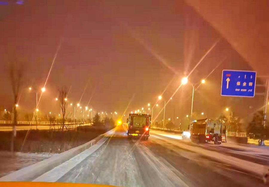 北疆新聞網(wǎng)、北疆新聞客戶端消息(記者 劉嬙)12月5日晚,內(nèi)蒙古自治區(qū)首府呼和浩特出現(xiàn)降雪天氣。為防止道路積雪結(jié)冰,保障廣大市民和車輛出行安全,呼和浩特市和各區(qū)兩級環(huán)衛(wèi)部門以雪為令,聞雪而動,按照清雪工作預(yù)案,分工明確,責(zé)任到人,機(jī)械和人工清雪緊密配合,第一時間在市區(qū)道路實施機(jī)械及人工清雪作業(yè),全面清理道路積雪結(jié)冰,確保高標(biāo)準(zhǔn)、高質(zhì)量、高效率地完成清雪任務(wù)。