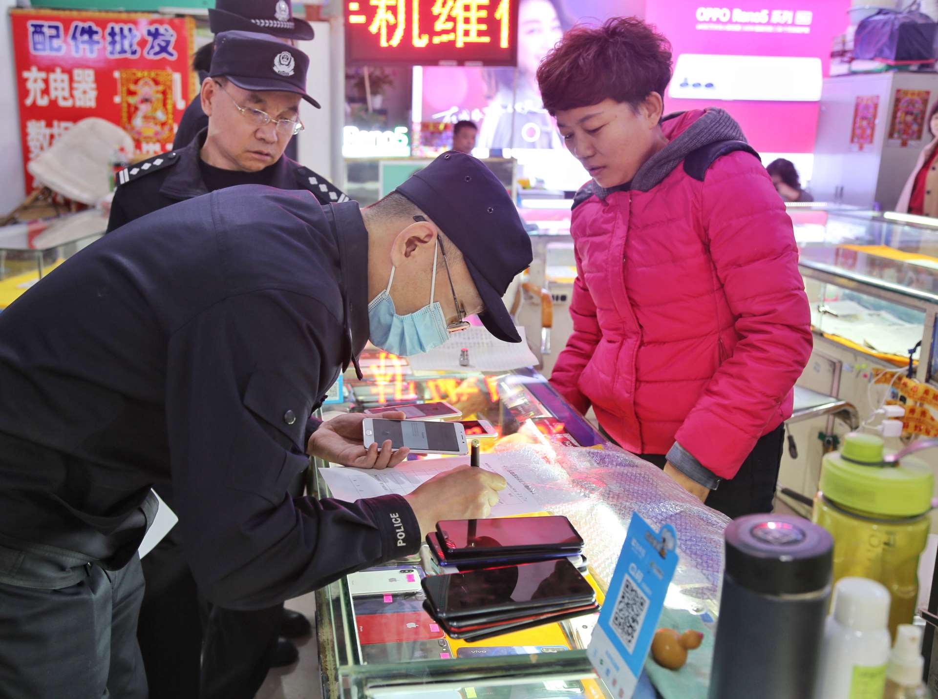 按照預(yù)定方案,行動分為四組,兩組對永和二手手機(jī)市場和眾興二手手機(jī)市場進(jìn)行突擊清查,另兩組以便衣形式對周圍流動收售手機(jī)人員進(jìn)行排查。行動期間,民警對二手手機(jī)銷售店鋪內(nèi)的手機(jī)和工作人員情況進(jìn)行清查,逐一對照登記臺賬,嚴(yán)格檢查落實(shí)情況,同時(shí)向經(jīng)營業(yè)主及市民進(jìn)行法制宣傳教育。此次行動共排查登記二手手機(jī)850部,買賣二手手機(jī)人員50余人,檢查二手手機(jī)商戶22家,暫扣未履行登記手機(jī)30余部。