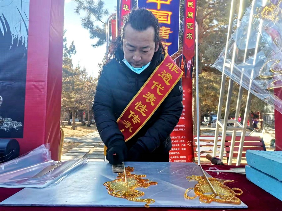 活動現(xiàn)場,非遺剪紙傳承人董存娥專門剪出“奧運(yùn)題材剪紙”和“北京冬奧會開幕式中國代表團(tuán)旗手、呼和浩特19歲姑娘趙丹”手舉國旗的剪紙作品。呼和浩特的非遺項(xiàng)目布藝、剪紙、蒙古族皮藝皮畫皮雕、糖畫、蛋雕、蒙鑲工藝、二人臺、爬山調(diào)等近20項(xiàng)進(jìn)行了現(xiàn)場展示展覽傳習(xí)互動,受到群眾歡迎。