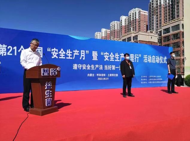 當好第一責任人”為主題的土左旗2022年“安全生產(chǎn)月”暨“安全生產(chǎn)萬里行”活動啟動儀式,在普澤生物舉行?,F(xiàn)場,40個旗直單位和12家企業(yè)的代表參加了啟動儀式。