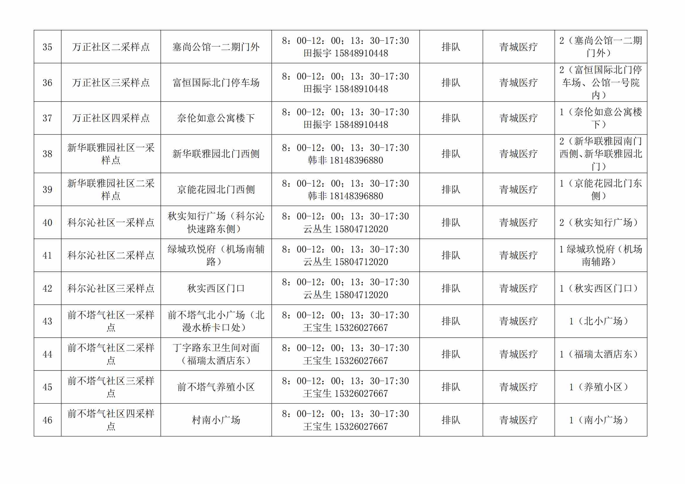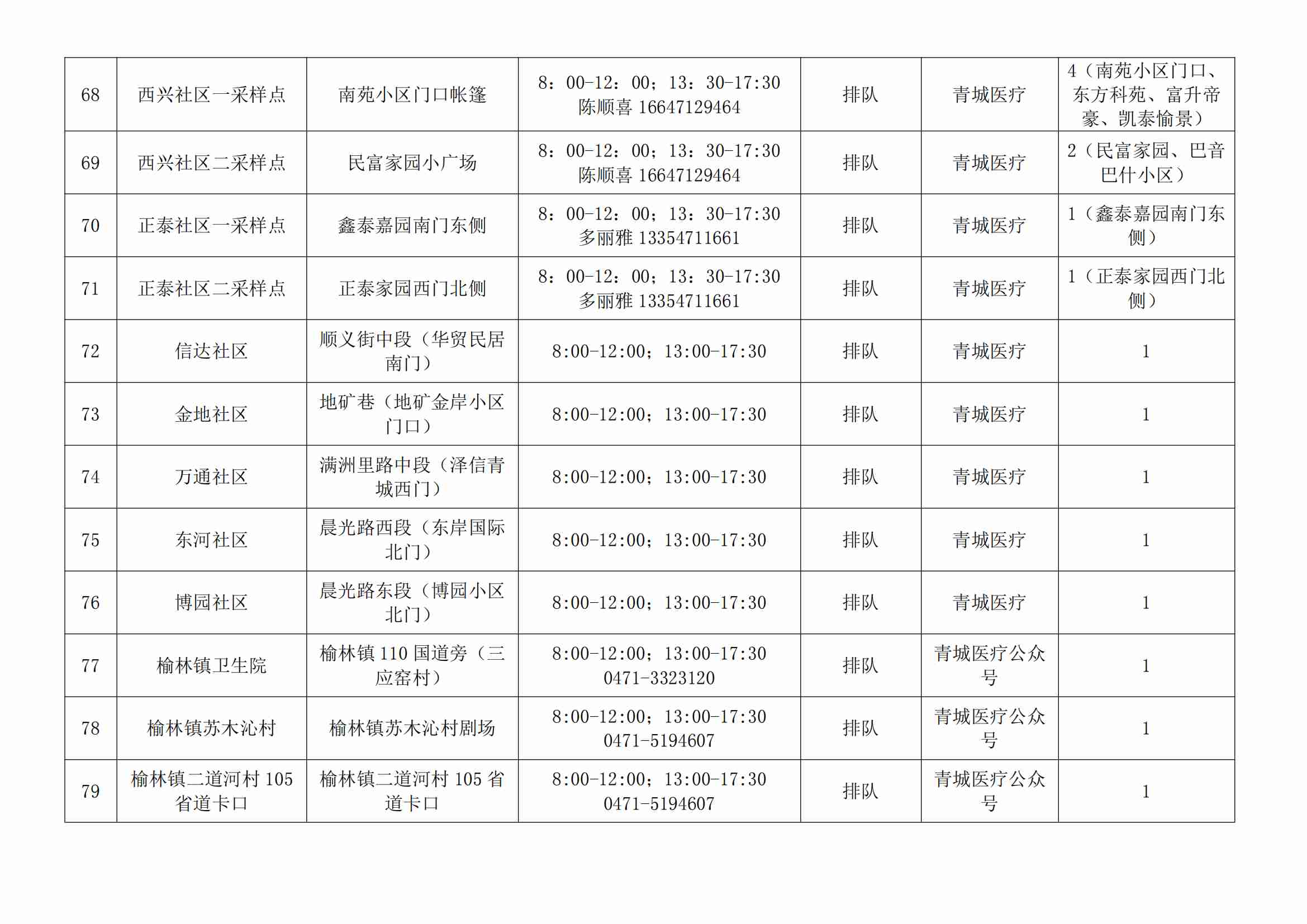 根據(jù)全市核酸檢測政策的調(diào)整,為滿足市民就醫(yī)、出行、工作等核酸檢測需求,賽罕區(qū)開放160個便民核酸采樣點(diǎn)(詳見附表),廣大市民可就近選擇,核酸結(jié)果從青城碼查詢。