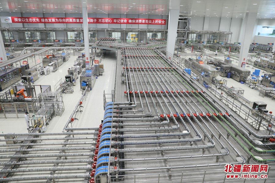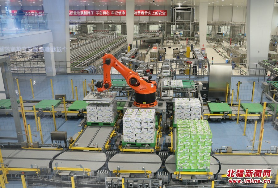 車間內(nèi)一派繁忙,液奶、奶粉生產(chǎn)線在高效運(yùn)轉(zhuǎn),貼管、分包、裝箱等工序一氣呵成,數(shù)字工廠、無菌車間、智能監(jiān)控等處處體現(xiàn)著現(xiàn)代化、智能化、生態(tài)化。