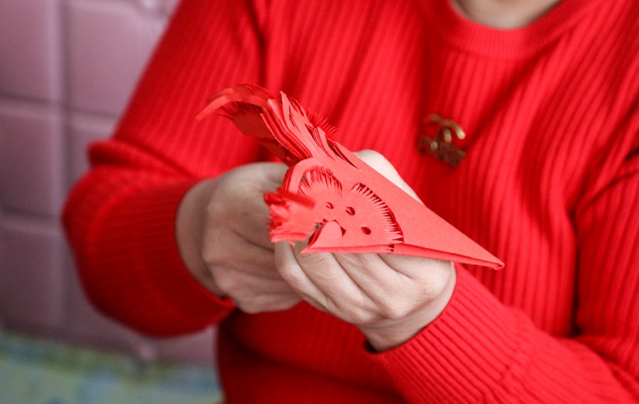 北疆新聞呼和浩特1月22日消息(記者 楊凈毓)春節(jié)將至,日前,在內(nèi)蒙古呼和浩特市土默特左旗畢克齊鎮(zhèn),土默特剪紙非遺傳承人李還秀和姐妹們在炕頭上剪窗花,非遺傳承人孟素英手工捏制“龍”樣面塑,準(zhǔn)備迎接“龍”年的到來。