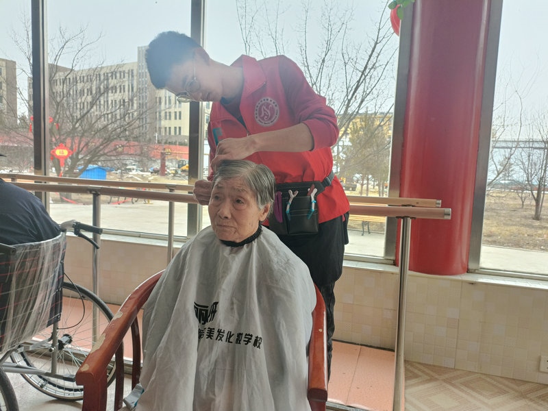 志愿者為敬老院義診、剪發(fā)、心理輔導、打掃房間等活動。