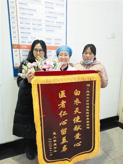 11月27日,當(dāng)孩子已經(jīng)好轉(zhuǎn)出院,王欣影沒有忘記那一夜遇到的好心人,她再一次撥通白楊的電話,此時,她才得知白楊就是附屬醫(yī)院手術(shù)室的一名護士。她將一面寫有“白衣天使獻愛心醫(yī)者仁心留美名”的錦旗送到了白楊的手中,她說:女兒又多了一位媽媽。白楊也向記者講起了那晚的經(jīng)歷,她說:“其實,那晚我是去接我丈夫的,由于暴雪,丈夫被困在了米家科技園附近,我開車去接他,在回來的路上,看到有車輛遇險,心想,這樣惡劣的天氣,遇到誰有困難就應(yīng)該幫一把,當(dāng)時,我們也沒有多想,我也是做母親的,看到夫妻倆那么焦急,我只想把孩子快點送到醫(yī)院,好在有驚無險,孩子平安無事。”后來,記者還了解到,當(dāng)把孩子送到醫(yī)院后,白楊已渾身濕透,待孩子已經(jīng)搶救上,安頓好王欣影后,已經(jīng)是凌晨5點,天也蒙蒙亮了,白楊沒有回家,一夜未眠的她,留在了工作崗位上。