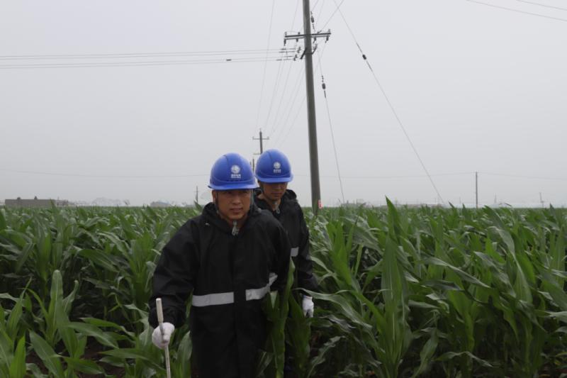 左中公司運(yùn)維人員在10千伏工業(yè)2線保三南園分03桿進(jìn)行雨后特巡。(攝影:趙昆陽)