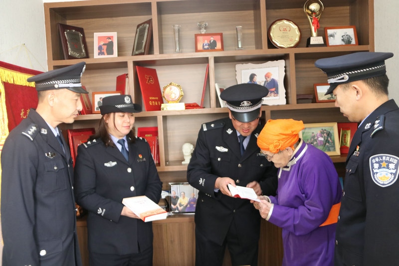 5月6日上午,民警們手捧鮮花來到都貴瑪老人家。一進(jìn)家門,便為都貴瑪老人送上了節(jié)日的祝福。民警們與都貴瑪老人嘮起了家常,詳細(xì)詢問老人的身體狀況和生活情況。大家你一言,我一語,聊著聊著,就談到了當(dāng)前開展的黨史學(xué)習(xí)教育。民警們把自己的學(xué)習(xí)體會和收獲一一向都貴瑪老人作了匯報(bào)。都貴瑪老人說,自己也通過觀看《新聞聯(lián)播》了解到國家十四五開局之年和全黨開展黨史學(xué)習(xí)教育的相關(guān)內(nèi)容。特別是看到民警們帶來的黨史書籍時,都貴瑪老人和大家講述了他們那一代人如何利用蒙文版書籍學(xué)習(xí)黨章黨史的故事,再次回顧了習(xí)近平總書記為她授予“人民楷?!眹覙s譽(yù)稱號獎?wù)聲r的自豪和激動。