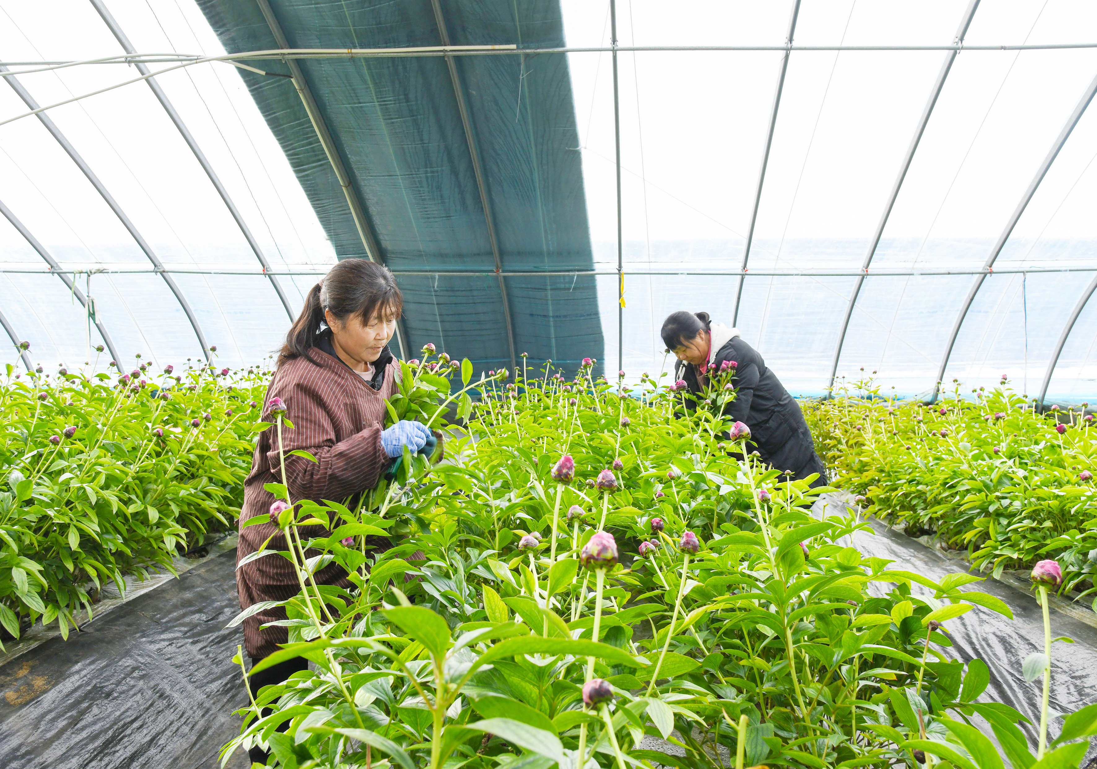 目前,烏蘭察布延彩生態(tài)農(nóng)業(yè)發(fā)展有限公司反季芍藥花的種植已初步形成產(chǎn)業(yè)化規(guī)模,為當(dāng)?shù)剞r(nóng)民提供了更多的就業(yè)機(jī)會(huì)和增收渠道。目前,該公司常年用工30余人,人均年收入5.3萬(wàn)元;鮮切花旺季時(shí),臨時(shí)用工200余人。
