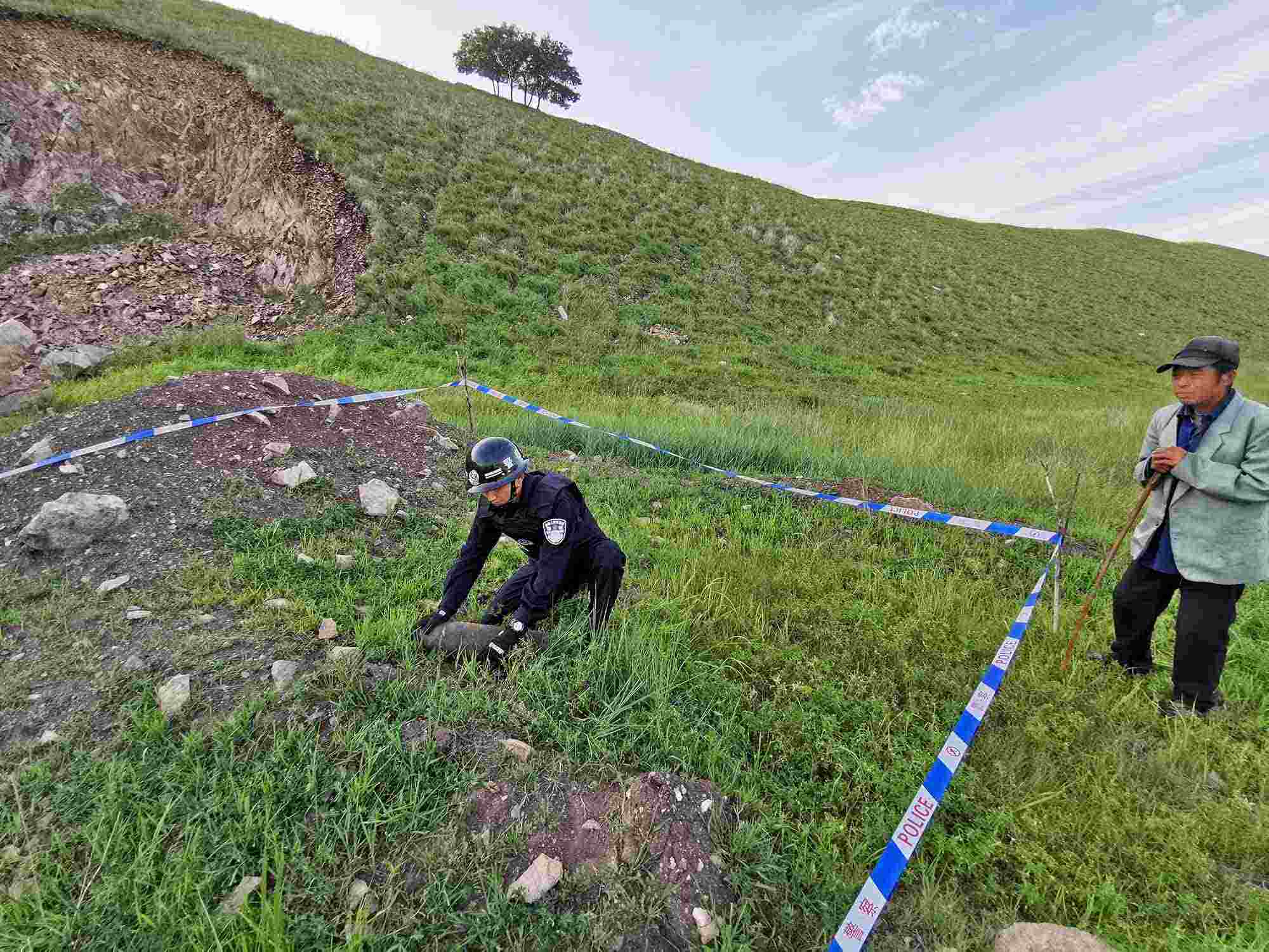 8月18日10時,阿爾山邊境派出所接到轄區(qū)群眾報(bào)警稱:在阿爾山市某山上發(fā)現(xiàn)疑似炮彈的金屬物體。民警迅速趕往指定地點(diǎn),劃定警戒區(qū)、封鎖出入通道,在現(xiàn)場很快發(fā)現(xiàn)了長約30厘米不等的3枚廢舊炮彈,經(jīng)初步勘驗(yàn),該炮彈系日軍侵華時期遺留,引信已經(jīng)損壞,但內(nèi)部裝置完好,受到劇烈撞擊仍有爆炸可能。8月19日14時,科右前旗綠水邊境派出所民警下鄉(xiāng)走訪期間,根據(jù)羊倌反映,在一處放牧包附近挖出2枚20厘米不等的廢舊炮彈和1枚手雷,炮彈的鐵質(zhì)外殼雖已生銹,但引信完好,輪廓清晰,若有牲畜踩踏仍有可能發(fā)生爆炸,具有較大的殺傷力。為徹查隱患,民警將炮彈轉(zhuǎn)至安全地帶后,對附近區(qū)域進(jìn)行了全方位排查搜索,未發(fā)現(xiàn)其他安全隱患。