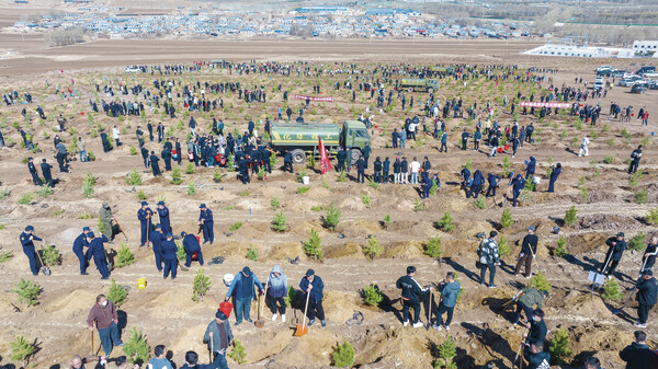 科右前旗柳樹川村義務(wù)植樹現(xiàn)場