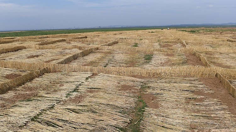 栽設4×4米網格狀沙幛、覆蓋草簾