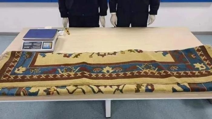深圳郵局海關(guān)關(guān)員在對過境貨物開展監(jiān)管時(shí)發(fā)現(xiàn),1票包裹機(jī)檢圖像可疑,隨即對其開箱查驗(yàn)。查驗(yàn)發(fā)現(xiàn),該票包裹內(nèi)有一塊做工精致的地毯,編織到地毯內(nèi)的透明細(xì)塑料管中藏匿有細(xì)粉末一批,毛重11555.8克。經(jīng)現(xiàn)場試劑檢測,判斷為冰毒。目前,海關(guān)緝私部門已介入調(diào)查處理。