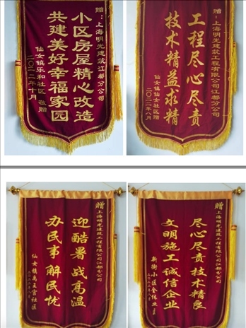 施工過程中,當?shù)厣鐓^(qū)及居民給施工方送去的部分錦旗。受訪者供圖