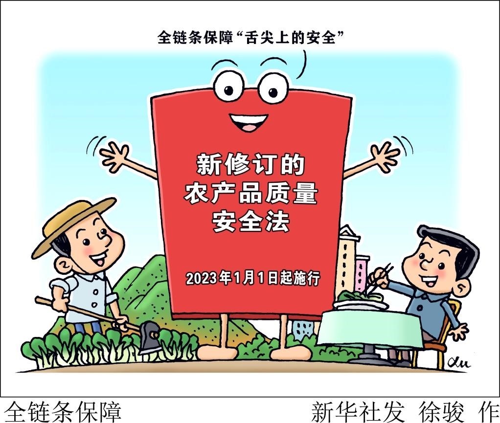 新版農(nóng)產(chǎn)品質(zhì)量安全法自1月1日起施行,實施農(nóng)產(chǎn)品質(zhì)量安全承諾達(dá)標(biāo)合格證制度,與食品安全法銜接,實現(xiàn)從田間地頭到百姓餐桌的全過程、全鏈條監(jiān)管。