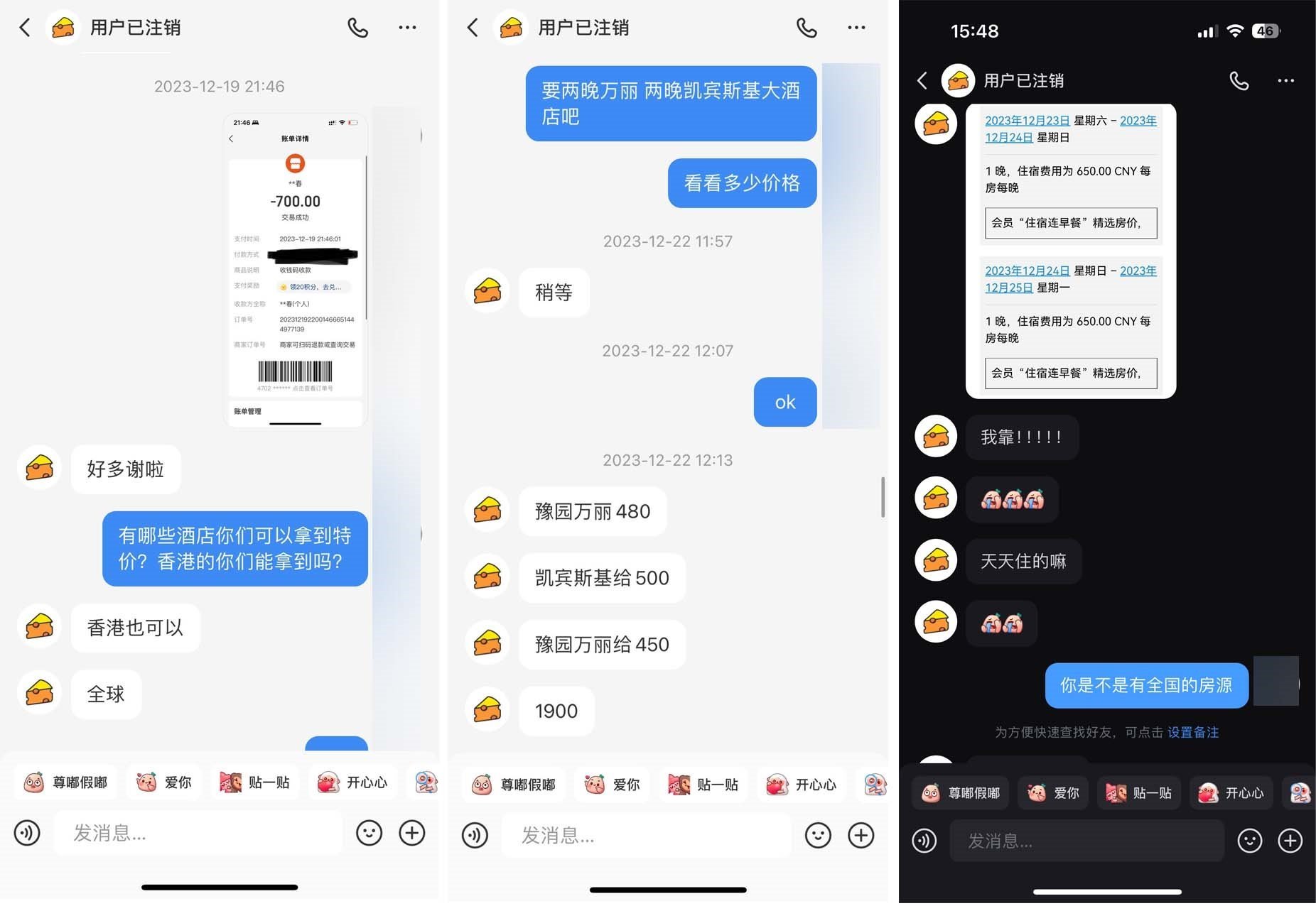 對(duì)方了解吳女士訴求后,很快提供了上海多家高檔酒店的折扣信息。吳女士表示,這名博主的報(bào)價(jià)可以做到“五折”,大幅低于市面上的訂房?jī)r(jià)格,令其不安。但對(duì)方則承諾這些“折扣房”系內(nèi)部?jī)r(jià)格,有“員工房”“協(xié)議房”或“積分房”等,訂房信息保真,須預(yù)付房費(fèi)且不能通過(guò)平臺(tái)直接交易。