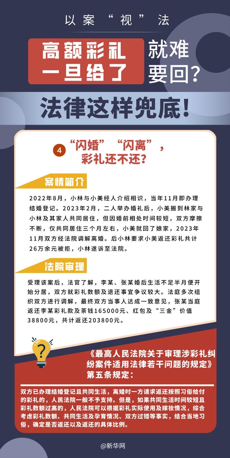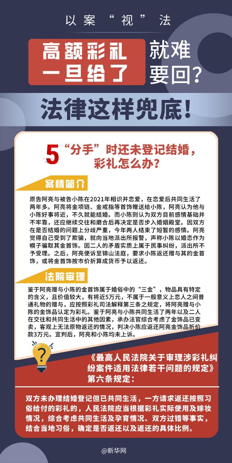 “五一”長假期間,各地迎來了婚禮高峰期,“彩禮”話題,尤其農(nóng)村高額彩禮現(xiàn)象備受關(guān)注。破解高價彩禮,在解決爭議的層面,司法盡了最大努力兜底。本期《以案“視”法》針對涉“高額彩禮”糾紛,帶大家學(xué)習(xí)相關(guān)法律知識。