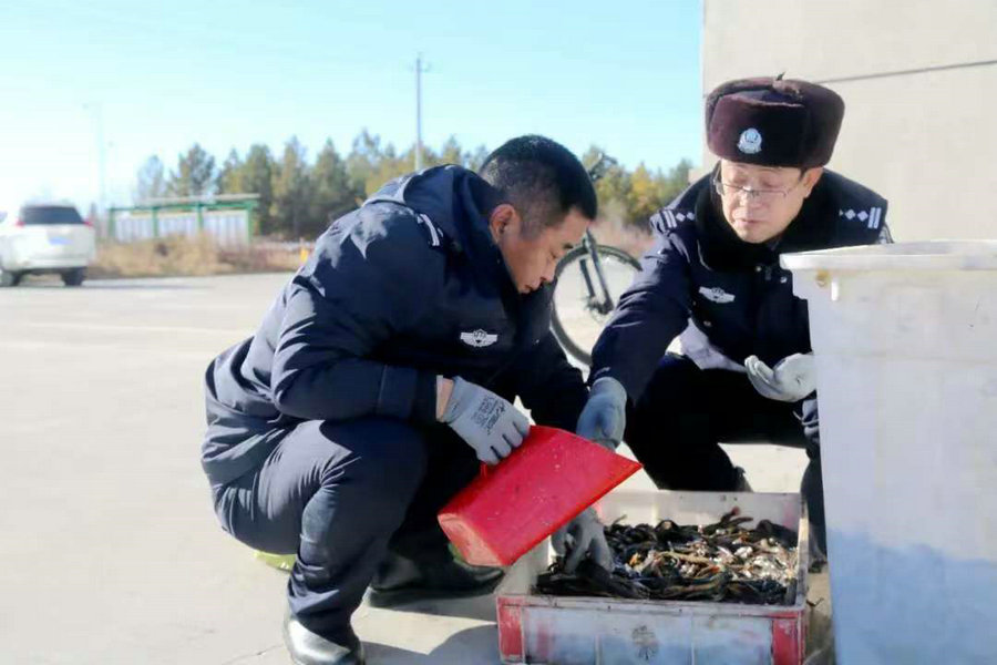 經(jīng)線索深挖和調(diào)查取證,民警發(fā)現(xiàn)林某、喬某等人為該店多批野生魚類供貨人,曾于今年夏秋之際,潛入鄂溫克族自治旗境內(nèi)輝河國家自然保護區(qū)濕地某段葦塘,利用夜色掩護,通過下放地籠、掛網(wǎng)大肆捕撈各類野生魚,并以廂式貨車拉至屯放點進行養(yǎng)殖販售。