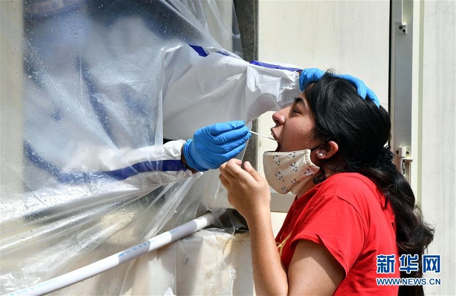 這是7月20日,醫(yī)護人員為印度新德里居民進行新冠病毒檢測采樣。新華社發(fā)(帕塔·薩卡爾攝)