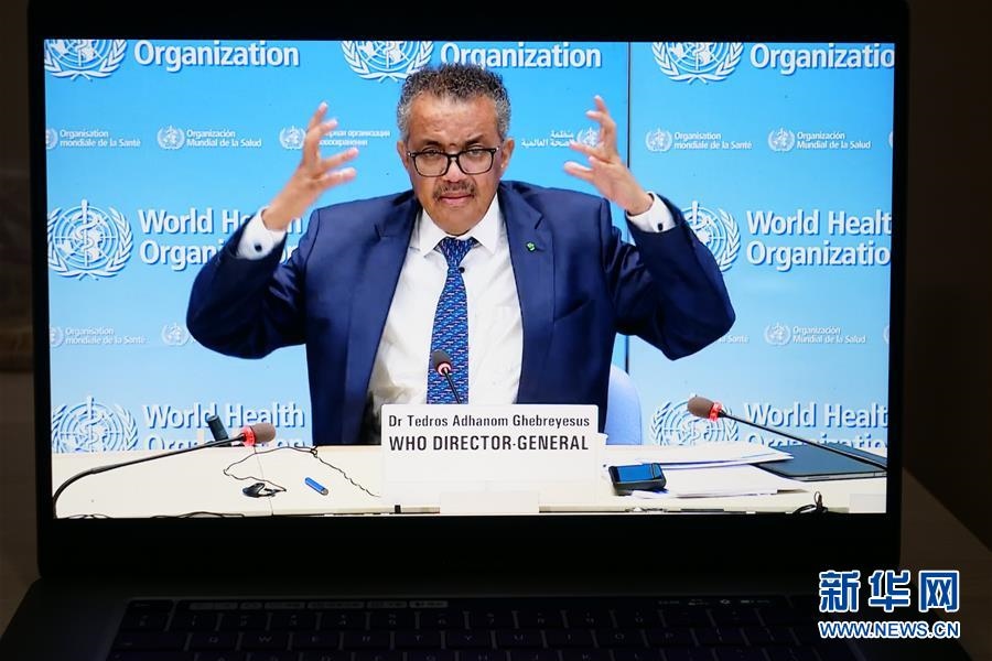 這是6月29日拍攝的世界衛(wèi)生組織總干事譚德塞在瑞士日內(nèi)瓦出席線上記者會的視頻畫面。新華社記者張鋮攝