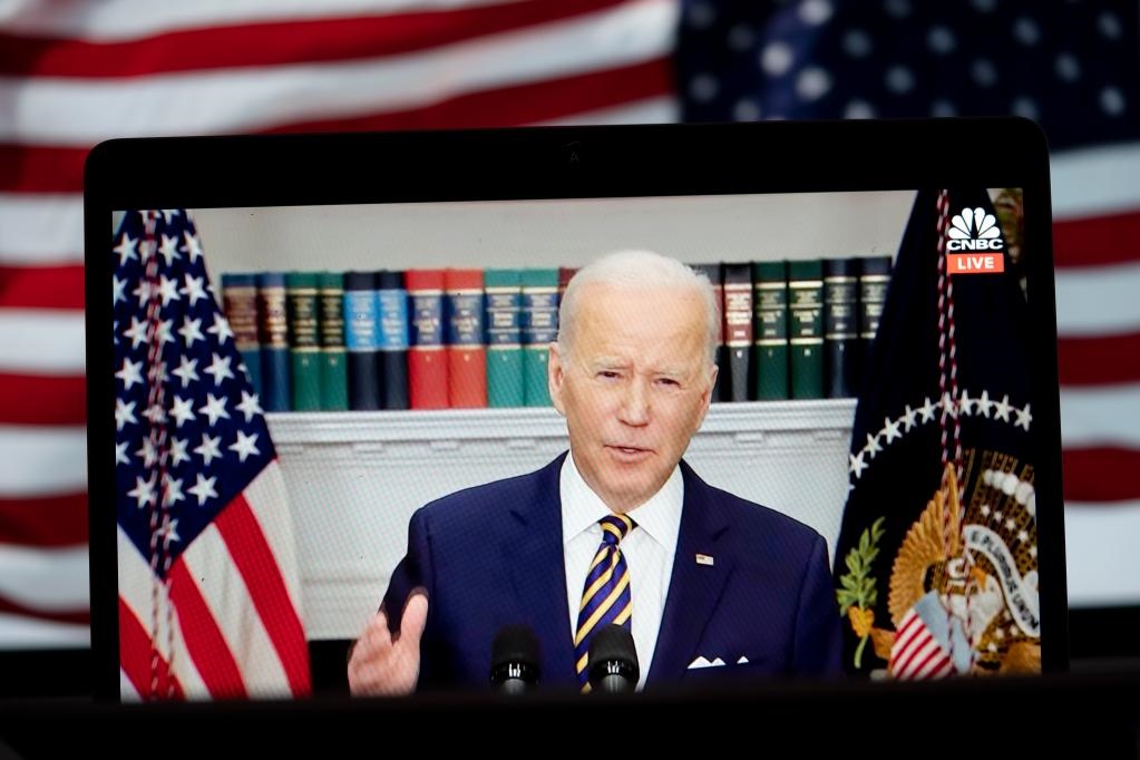 2022年3月8日拍攝的視頻畫面顯示,美國(guó)總統(tǒng)拜登在華盛頓白宮發(fā)表講話。拜登當(dāng)天宣布,美國(guó)將對(duì)俄實(shí)施能源禁運(yùn),停止從俄進(jìn)口石油、天然氣和煤炭。新華社記者劉杰攝