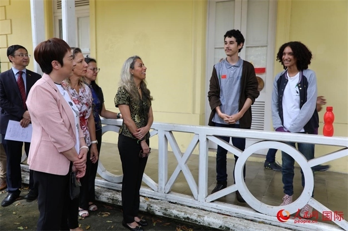 2月14日,中國(guó)駐里約熱內(nèi)盧總領(lǐng)事田敏來(lái)到巴西里約州尼特羅伊市的尼特羅伊葡中雙語(yǔ)中學(xué)訪問(wèn),并向該校捐贈(zèng)了一批中國(guó)文化書籍。人民網(wǎng)記者 陳一鳴攝
