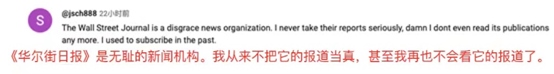 網(wǎng)友@jsch888說:“《華爾街日報》是無恥的新聞機(jī)構(gòu)。我從來不把它的報道當(dāng)真,我甚至再也不會看它的報道了?!?/p>