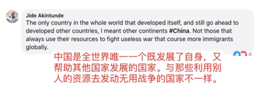 網(wǎng)友盧克蒙·奧拉德潑·法布恩米說:“撒謊者已經(jīng)被指出來了,他們批評中國制造的一切,但被人發(fā)現(xiàn)他們的指責(zé)毫無根據(jù)。中國干得漂亮。”