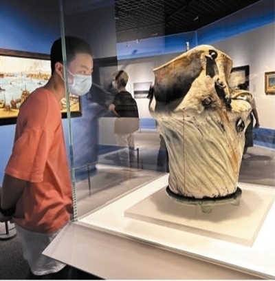 觀眾在上海博物館觀賞“塔拉薩:海洋文明與希臘藝術(shù)”展。周東潮攝(影像中國)