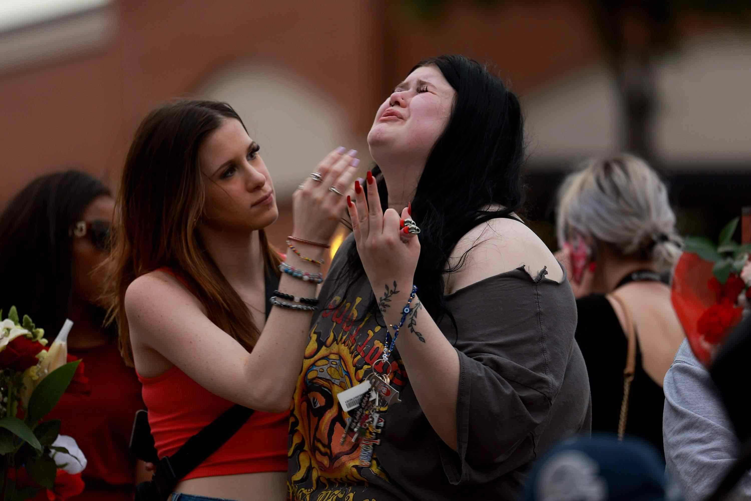 當(dāng)?shù)貢r(shí)間2023年5月7日,美國(guó)得克薩斯州艾倫市,民眾參加守夜活動(dòng)哀悼槍擊事件遇難者。美國(guó)得克薩斯州一家購(gòu)物中心6日發(fā)生槍擊事件,造成包括槍手在內(nèi)的9人死亡、7人受傷。 視覺(jué)中國(guó)