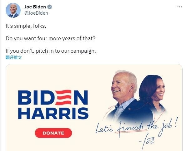 CNN注意到,在特朗普的直播結(jié)束后不久,美國總統(tǒng)拜登在社交媒體上發(fā)出了政治籌款呼吁,并配文稱,“很簡單,伙計(jì)們。 你還想再那樣過四年嗎?如果你不喜歡,請參與我們的競選活動(dòng)?!?/p>