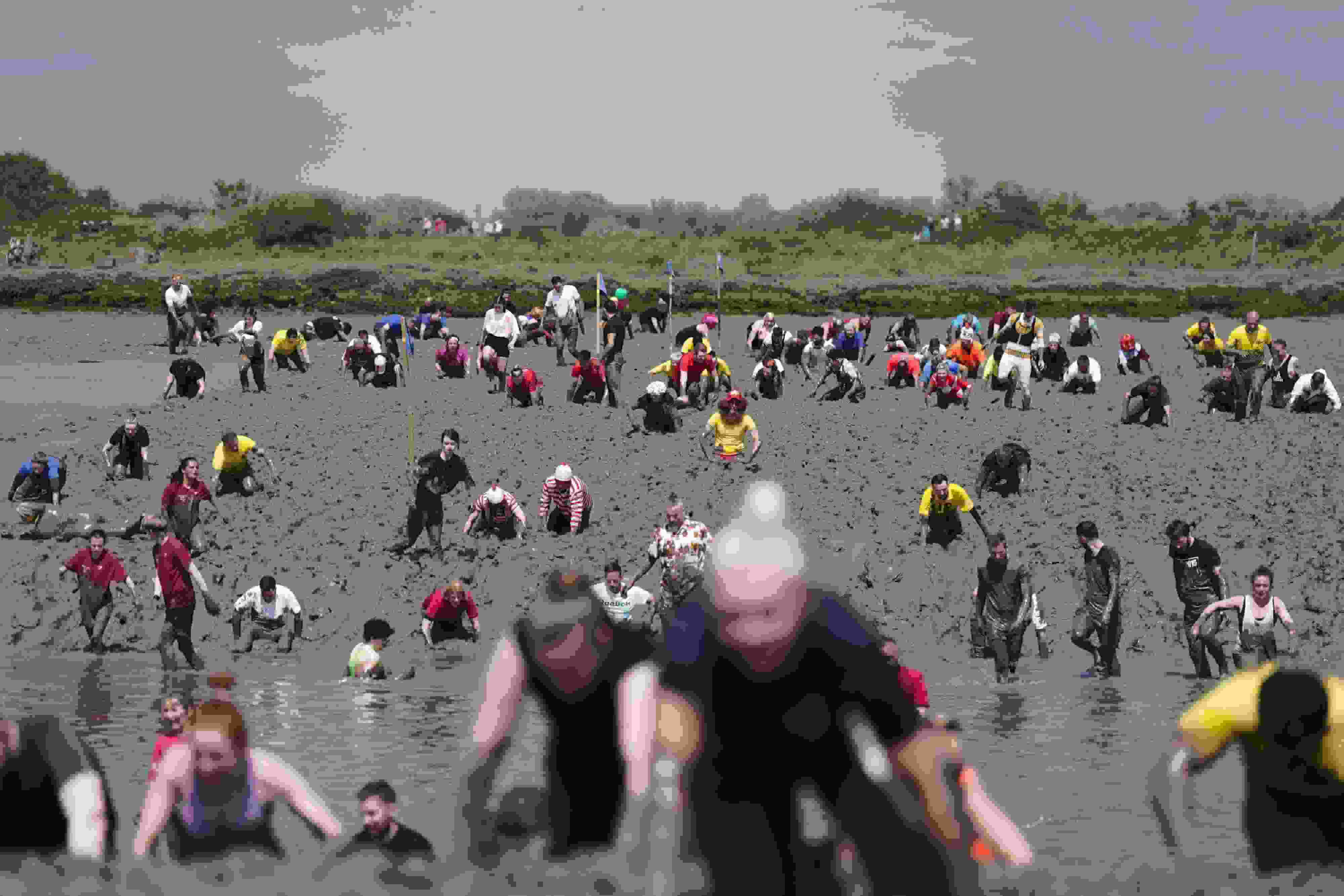 英國莫爾登上演年度“滾泥巴大賽”