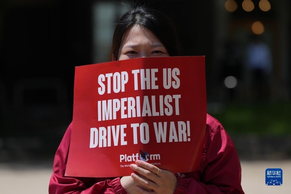 5月21日,民眾聚集在日本廣島袋町公園,抗議七國集團(tuán)峰會(huì)。