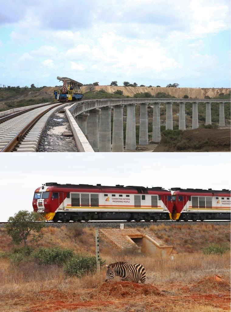 上圖:這是2016年9月1日在肯尼亞蒙巴薩拍攝的建設(shè)中的蒙內(nèi)鐵路蒙巴薩特大橋項(xiàng)目。新華社記者 潘思危 攝