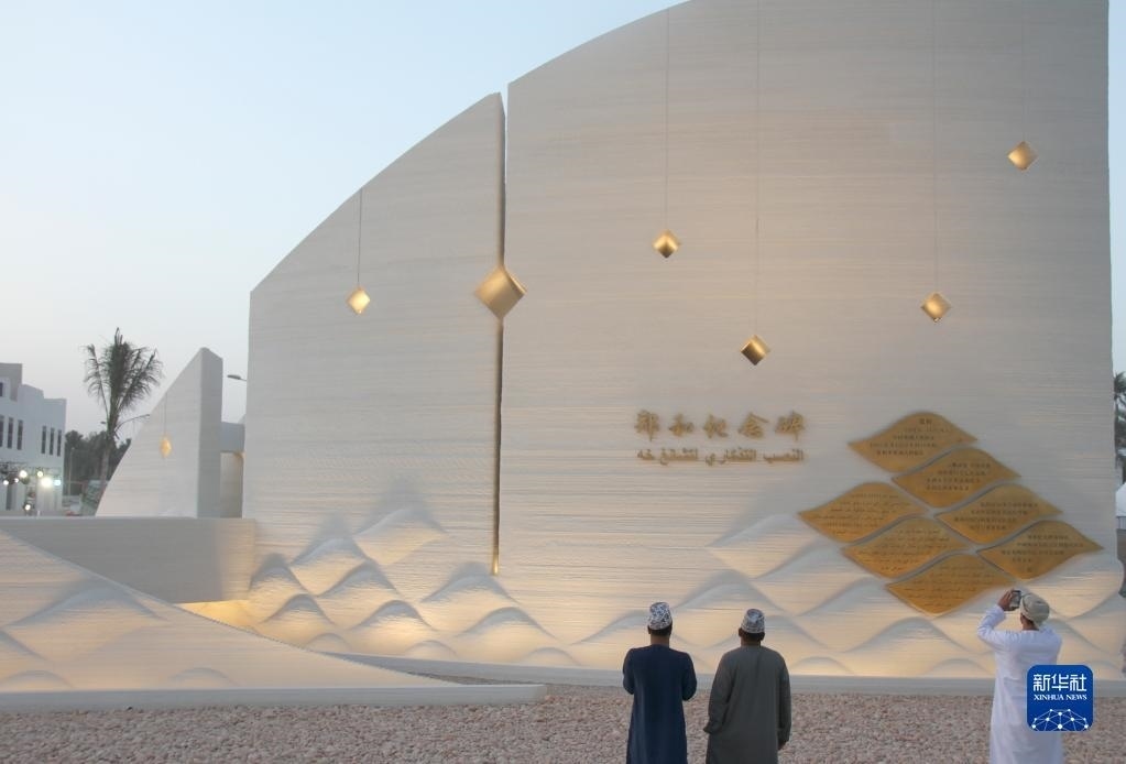 中國駐阿曼大使館5月30日在阿曼第二大城市塞拉萊舉行鄭和碑竣工儀式。鄭和碑主體造型取自海浪與船頭,用靈動的曲線還原鄭和船隊乘風破浪的場景。鄭和碑選址在佐法爾省政府打造的國家級濱海傳統(tǒng)文化、旅游與商務區(qū)內(nèi)的核心地帶。   新華社記者 汪強 攝