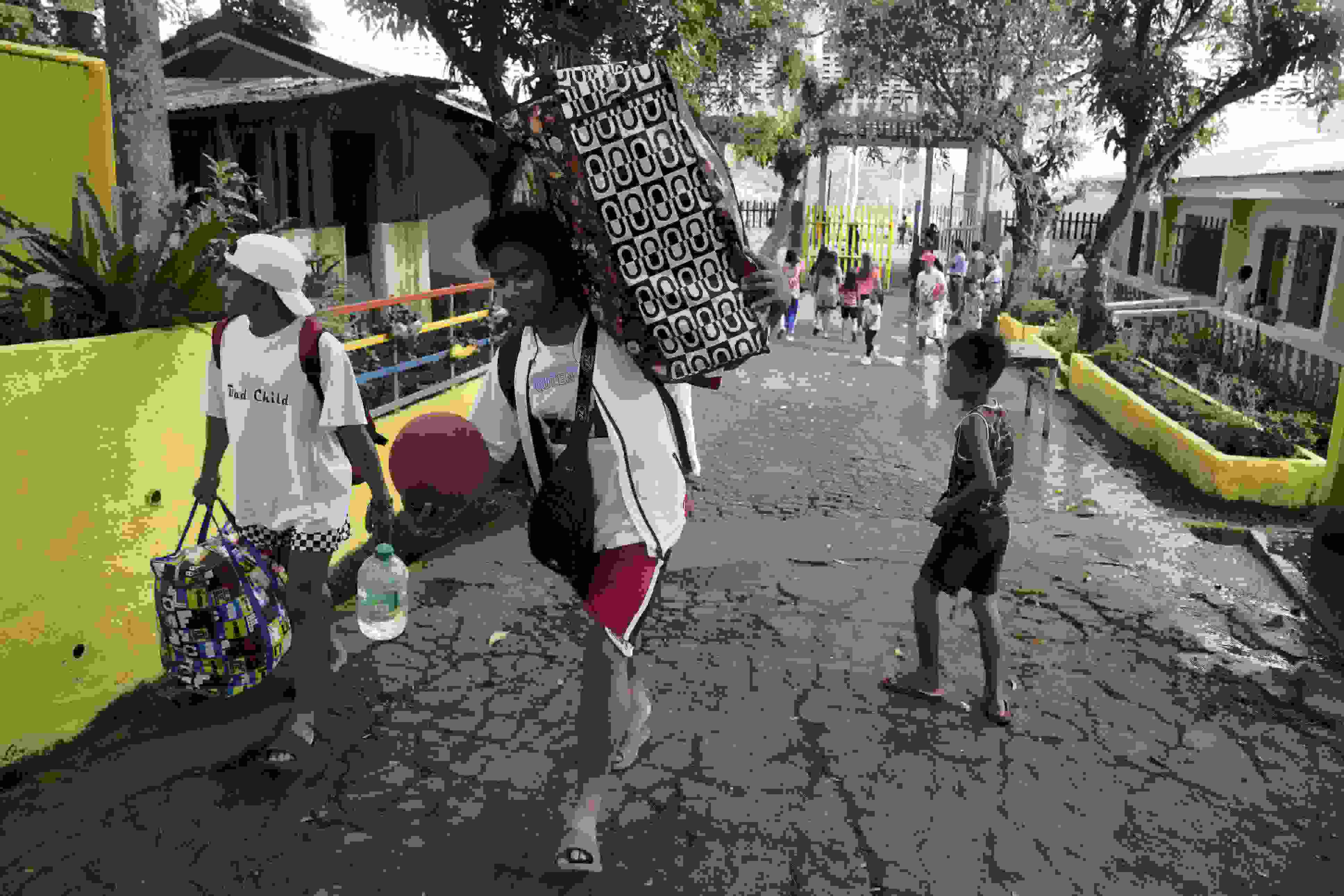 當(dāng)?shù)貢r(shí)間2023年6月10日,菲律賓阿爾拜省,撤離人員帶著他們的物品抵達(dá)臨時(shí)安置點(diǎn)。 視覺(jué)中國(guó)