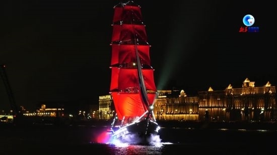 24日深夜,圣彼得堡為慶祝中學(xué)生畢業(yè)準(zhǔn)備的年度大型活動(dòng)“紅帆節(jié)”如期舉行。
