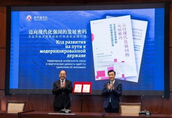 會議重點(diǎn)宣介和展示的新華社國家高端智庫報告《邁向現(xiàn)代化強(qiáng)國的發(fā)展密碼——習(xí)近平經(jīng)濟(jì)思想的時代特質(zhì)和實(shí)踐價值》引發(fā)與會各國嘉賓廣泛關(guān)注。該智庫報告是新華社研究習(xí)近平新時代中國特色社會主義思想的創(chuàng)新成果,從哲學(xué)維度、方略維度、戰(zhàn)術(shù)維度和全球視野,全面闡釋習(xí)近平經(jīng)濟(jì)思想的核心要義、精神實(shí)質(zhì)、豐富內(nèi)涵,以“美”“實(shí)”“效”“協(xié)”“共”五個關(guān)鍵字深入解讀習(xí)近平經(jīng)濟(jì)思想的鮮明特征,系統(tǒng)展現(xiàn)了其中所蘊(yùn)含的大國經(jīng)濟(jì)治理智慧。