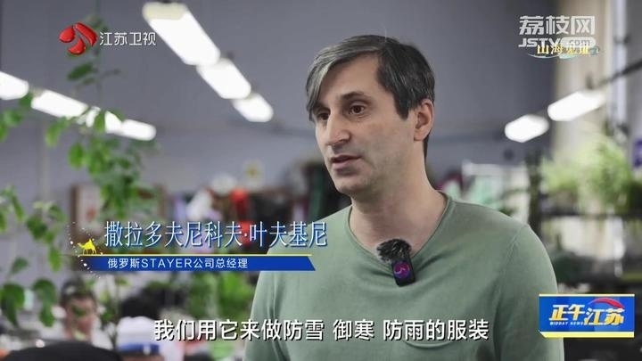 俄羅斯STAYER公司總經(jīng)理撒拉多夫尼科夫·葉夫基尼說(shuō):“這都是剛從中國(guó)運(yùn)過(guò)來(lái)的布料,它們具有防水性,透氣性,我們用它來(lái)做防雪、御寒、防雨的服裝。所有人都贊成中國(guó)的布料越來(lái)越好,近三年的計(jì)劃是加強(qiáng)與合作伙伴的聯(lián)系,擴(kuò)大布料的購(gòu)買量,期待有好的發(fā)展?!?/p>