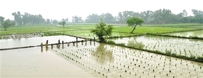 時(shí)值正午,驕陽(yáng)似火。在拉合爾西南郊的一處雜交水稻試驗(yàn)田里,來(lái)自中國(guó)湖南的農(nóng)業(yè)專(zhuān)家龍春久正在同當(dāng)?shù)剞r(nóng)民和技術(shù)員一起進(jìn)行雜交水稻選種試驗(yàn)。頭戴草帽,褲腳挽至膝蓋,龍春久在泥濘的水田里彎腰插秧,汗水從他黝黑的面龐上淌下。
