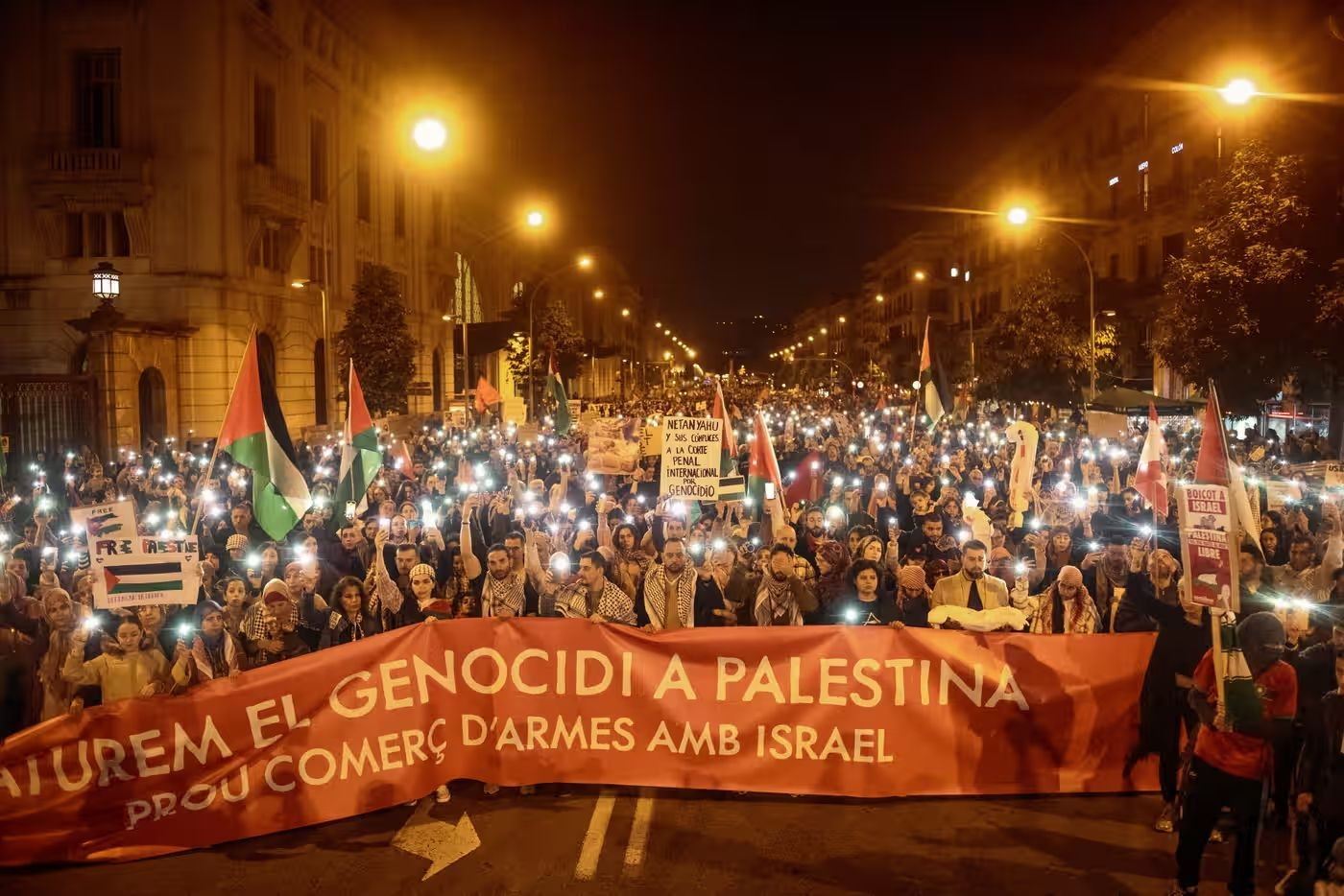 當?shù)貢r間11日,民眾在西班牙巴塞羅那參加支持巴勒斯坦游行 圖源:《衛(wèi)報》